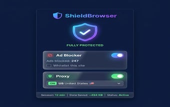 ShieldBrowser är en gratis webbläsartillägg som kombinerar en ad blocker och en proxy för att skydda användares integritet online. Med över 230 regler blockerar den annonser, spårare och skadlig kod, och erbjuder en per-sajt vitlista för att stödja önskade webbplatser. Användare kan också njuta av en alltid aktiv VPN-funktion som automatiskt skyddar deras trafik genom proxyservrar i över 10 länder, inklusive USA, Tyskland och Japan. Tillägget har också en användarvänlig design med animerade kontroller och realtidsstatistik för blockerade annonser och sparad data.